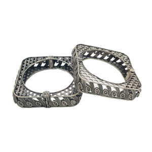 Vintage Charm Oxidised Square Kada Bangles