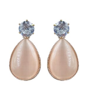Soft Teardrop Stone Drop Earrings with Crystal Stud
