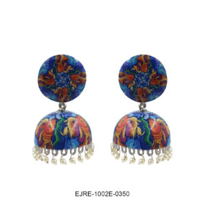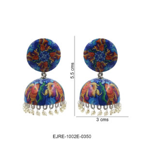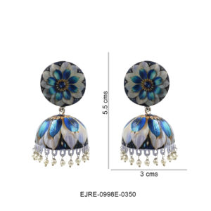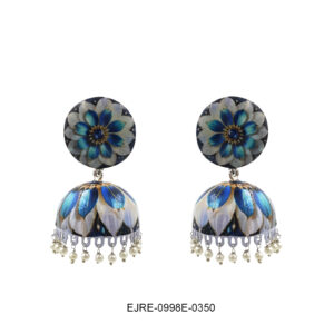 Blue Floral Hand-Painted Jhumka Earrings with Pearl Drops