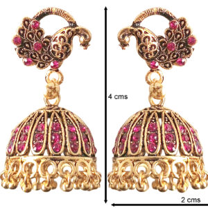 Antique Pink Stone Peacock Jhumka Earrings