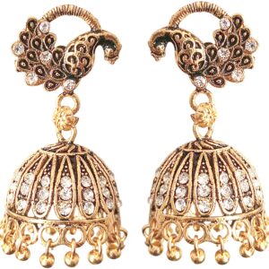 Antique White Stone Peacock Jhumka Earrings