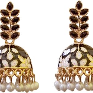 Black Enamel Floral Jhumki Earrings with Pearl Drops