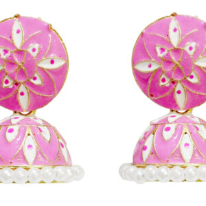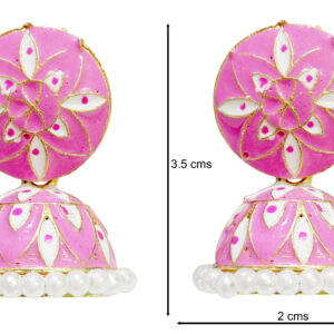 Blush Pink Enamel Floral Jhumki Earrings with Pearl Border