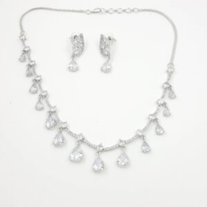 Elegant American Diamond Jewellery Set with Aquamarine Accents
