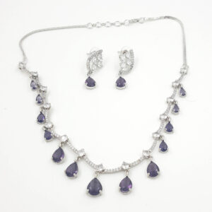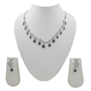 Royal Purple Drop American Diamond Necklace Set