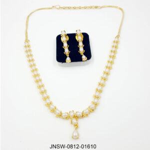 A beautifully minimal pearl necklace set crafted with twin pearl links and finished with an elegant teardrop pendant. Its lightweight design and timeless look make it a perfect pick ...