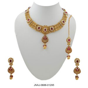Regal Gold-Toned Traditional Necklace Set with Earrings