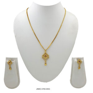 Regal Antique Gold Necklace Set with Ornate Pendant and Diamond-Shaped Earrings