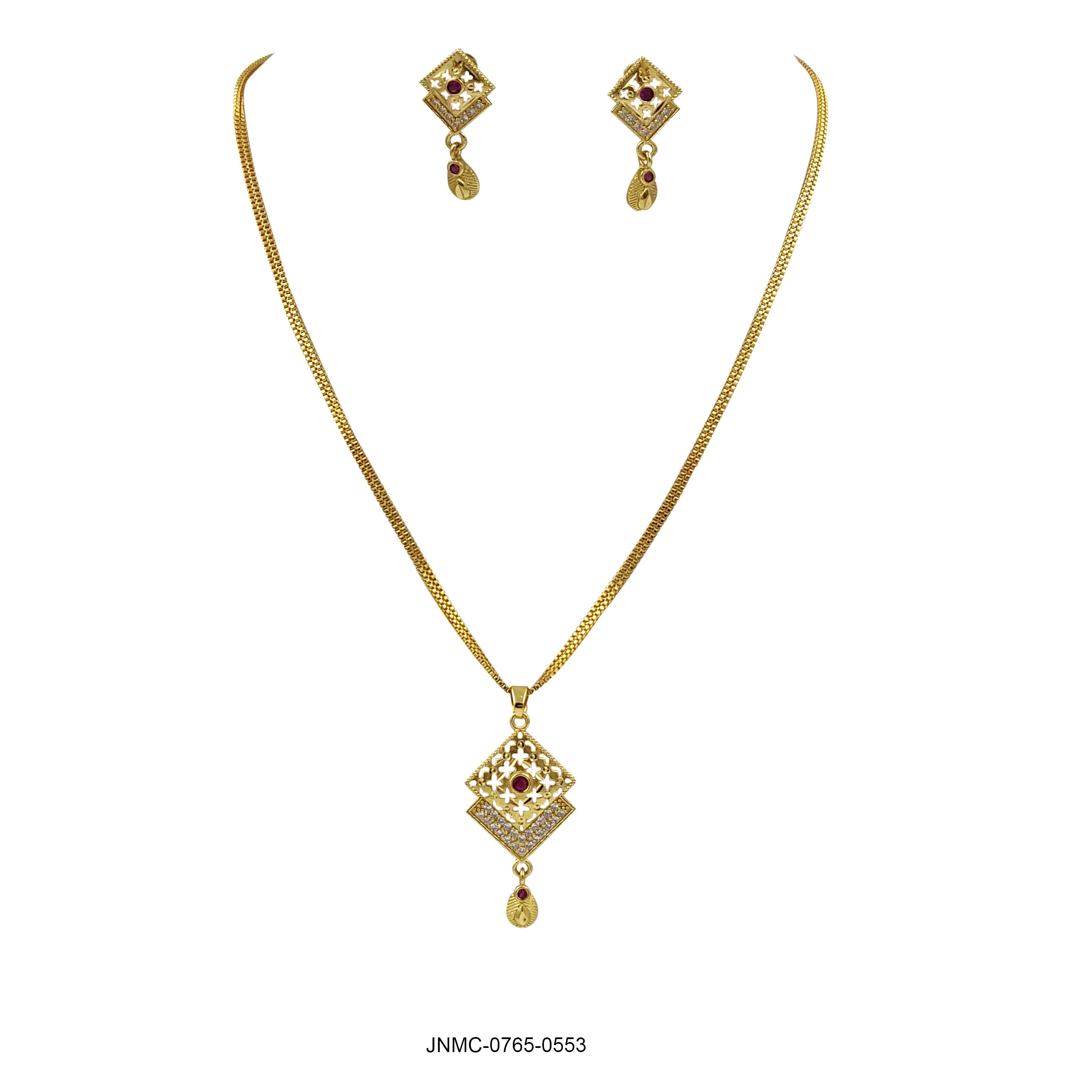 Regal Diamond-Shaped Gold-Tone Pendant Set with Earrings