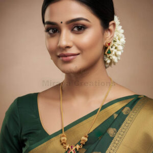 Rajwadi Polish Traditional Necklace Set with Green Stone Pendant