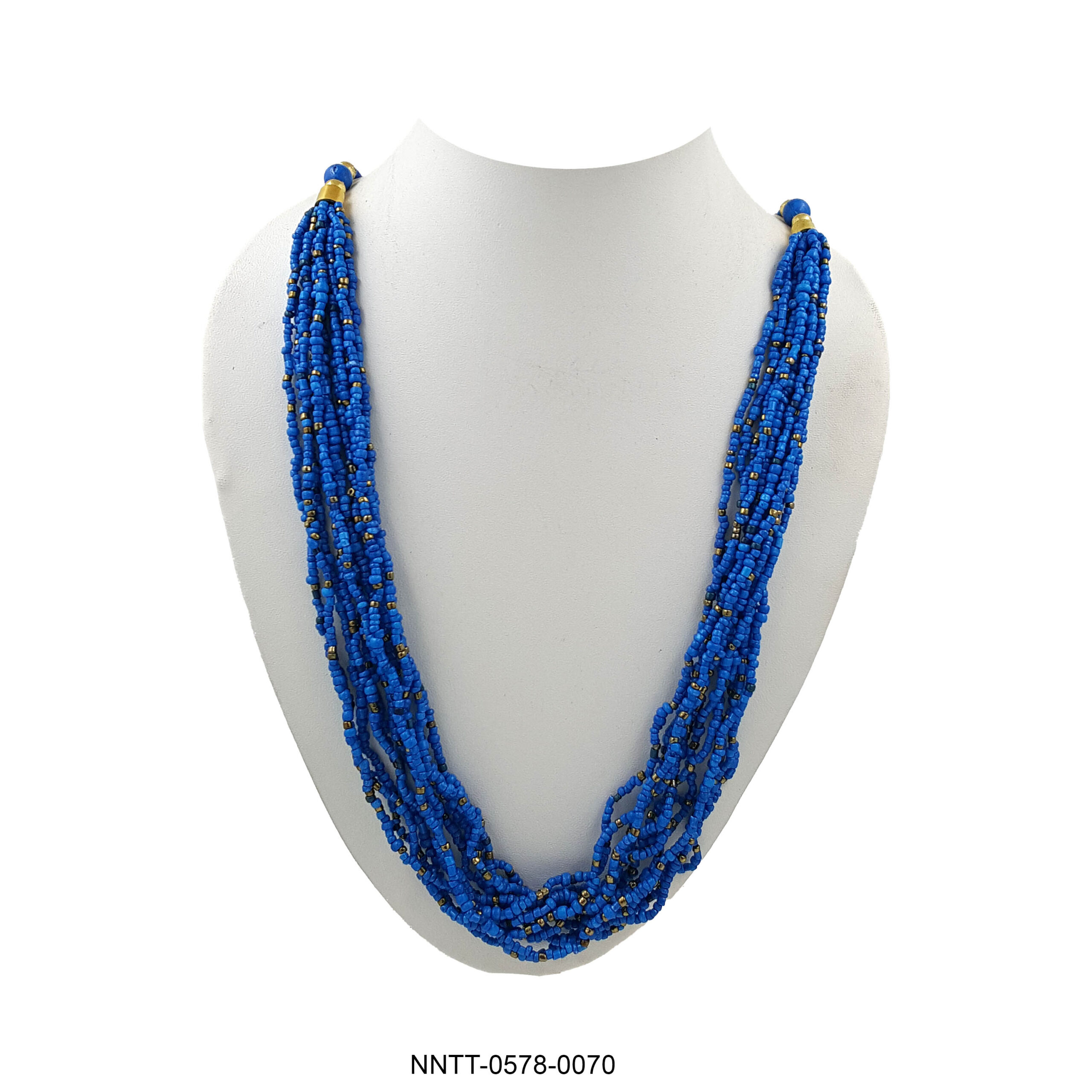 Add a touch of sparkle to your Navratri nights with this elegant multistrand necklace crafted with shimmering blue beads. Lightweight yet striking, it’s the perfect piece to sway with you through every Garba and Dandiya twirl. Its versatile tones complement both vibrant and dark festive outfits effortlessly.
