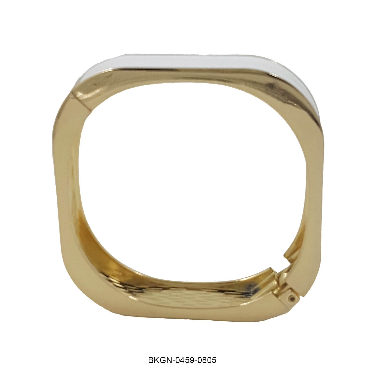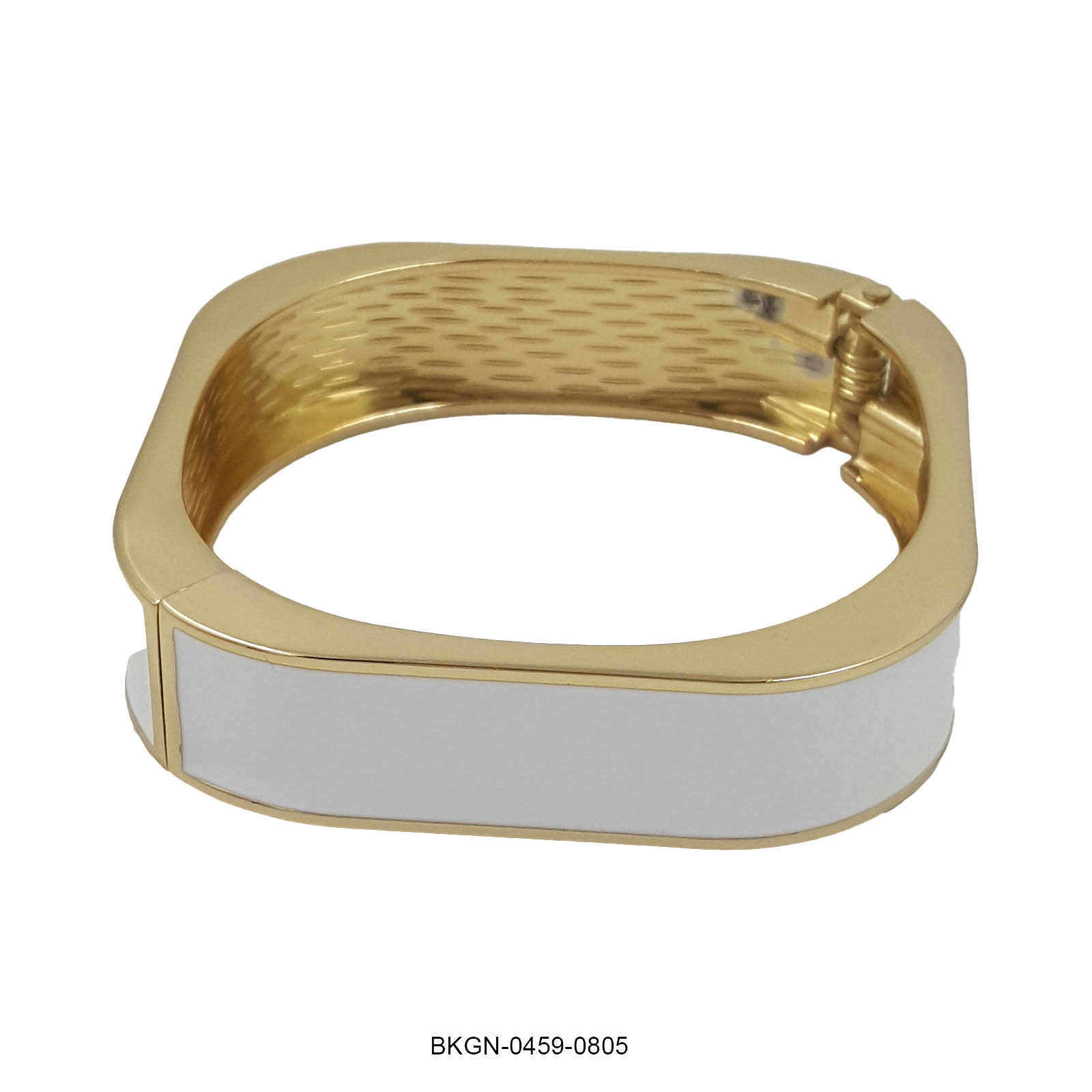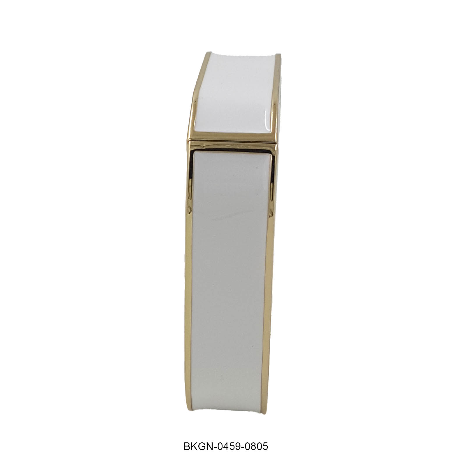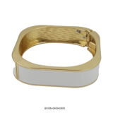Refined and radiant, this white enamel kada bracelet is the epitome of understated luxury. Featuring a sleek rectangular silhouette and a rich gold-plated frame, it brings together simplicity and elegance in perfect harmony. The lustrous white enamel surface adds a modern touch, while the smooth inner texture and hinge clasp ensure a comfortable and secure fit.