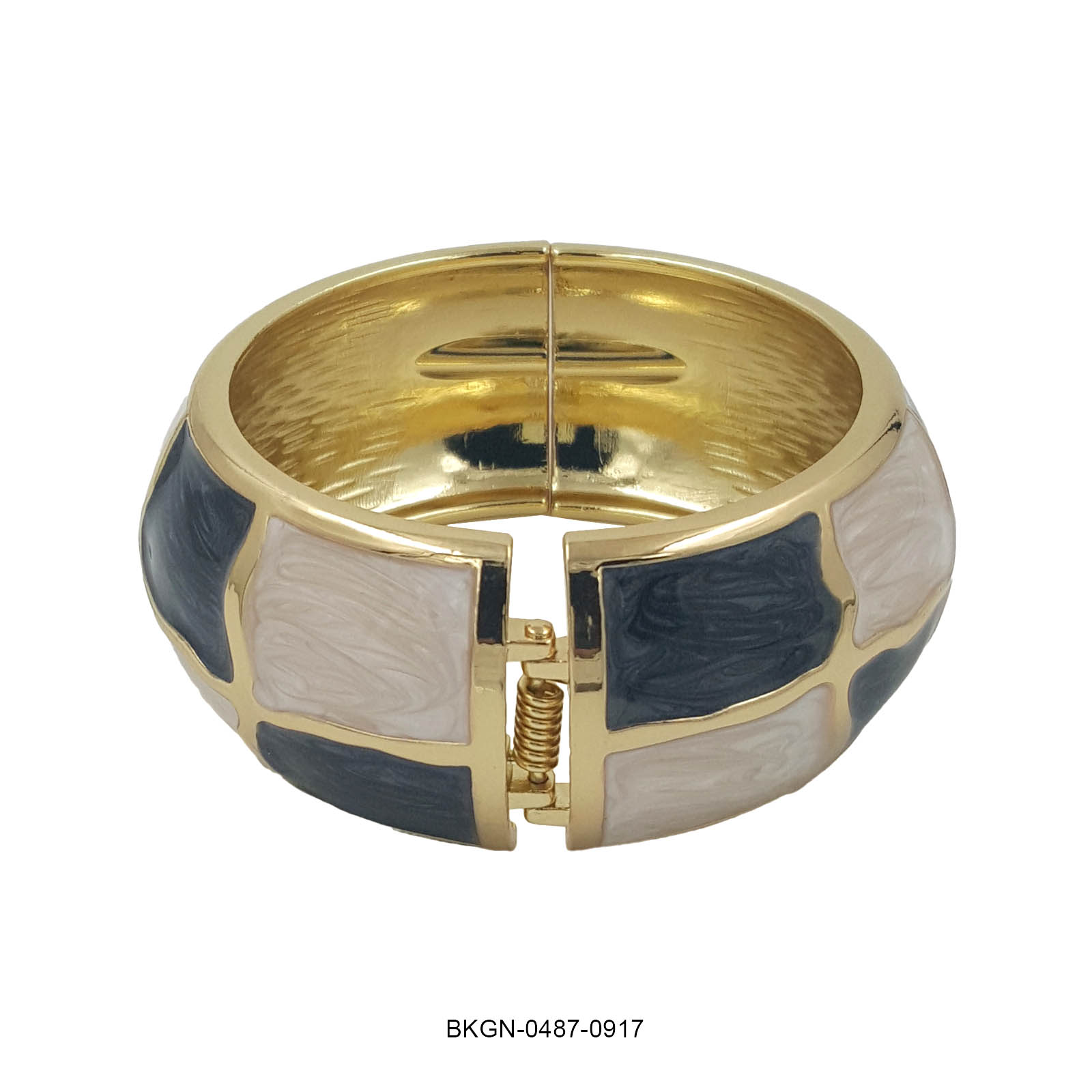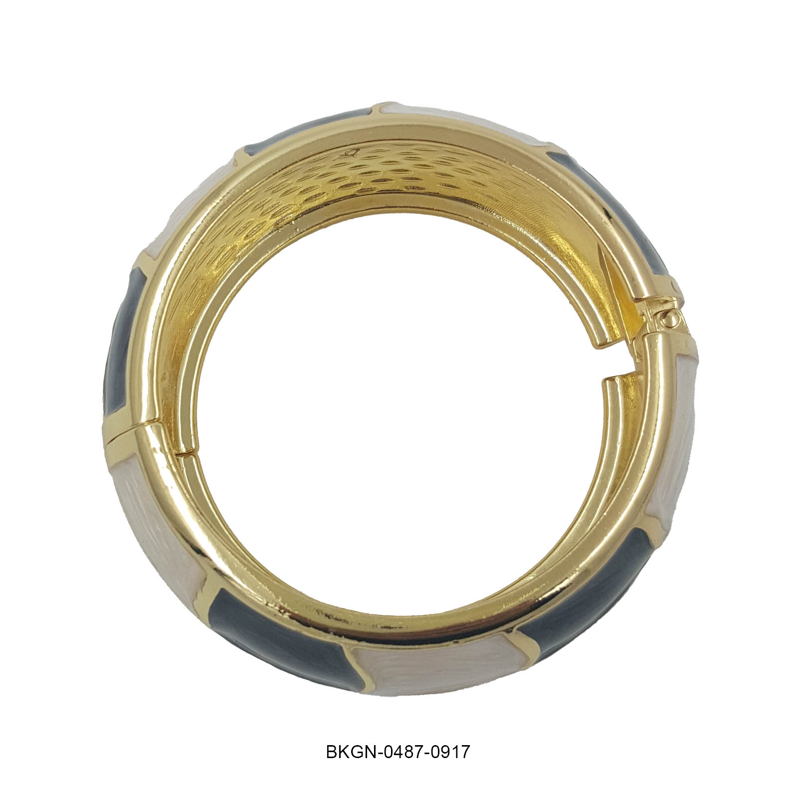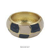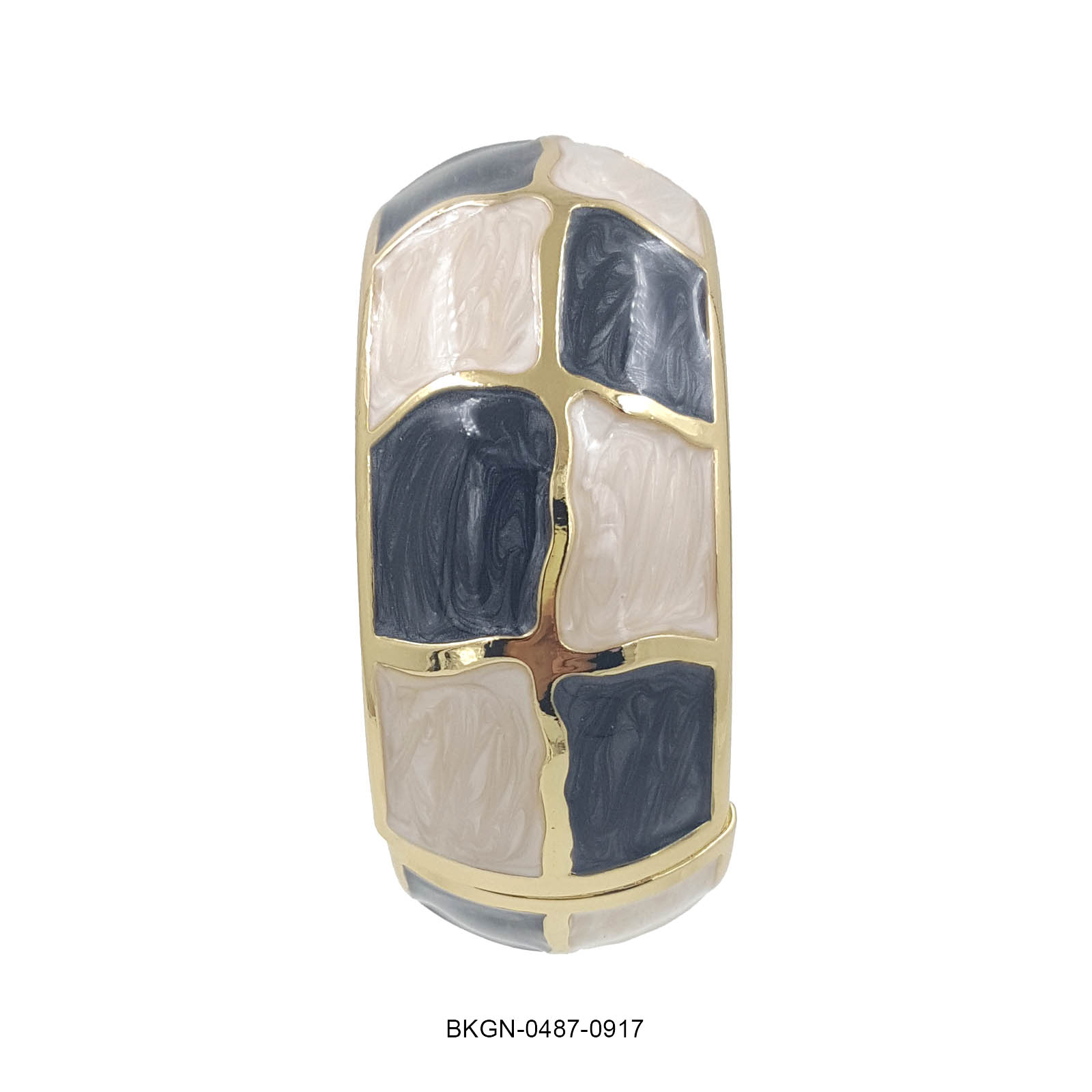 A chic and versatile kada bracelet designed in a unique mosaic pattern with soft beige and deep charcoal enamel blocks outlined in gold-toned detailing. Its dome-shaped structure and textured inner finish make it comfortable to wear while adding a touch of artistic elegance. This neutral yet striking colour combination makes it perfect for both everyday wear and elevated styling.