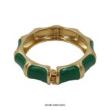 A bold blend of luxury and vibrance, this green enamel openable bracelet features a sculpted gold base with smooth, glossy detailing. The deep emerald tone adds a regal touch, while the gold finish gives it timeless sophistication. Perfect for festive occasions, evening events, or everyday glam — this piece is designed to turn heads effortlessly.