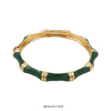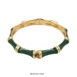 Inspired by nature’s raw beauty, this gold bangle features a deep green enamel design that mimics the elegance of bamboo. A perfect blend of sophistication and earthy charm, it adds a unique statement to both traditional and modern looks.