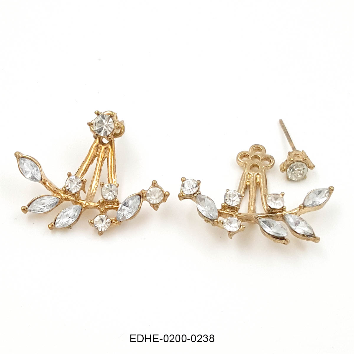 Be the first to review “Floral Crystal Jacket Stud Earrings in Gold Finish”