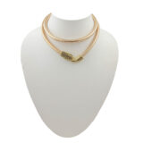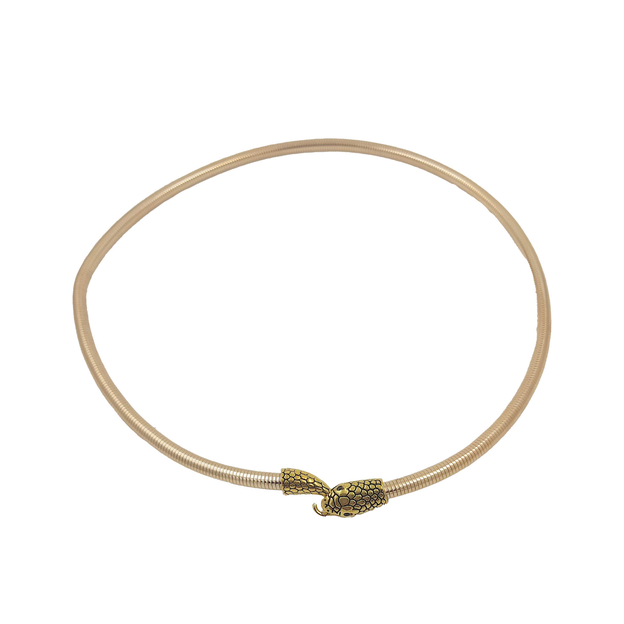 A bold fusion of tradition and modernity, this sleek gold-tone choker features an intricately detailed snake-head motif clasp. The flexible design hugs the neckline beautifully, adding an edge of sophistication and power to your look. A perfect statement piece for those who dare to be different.