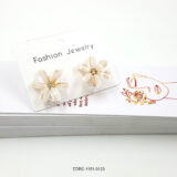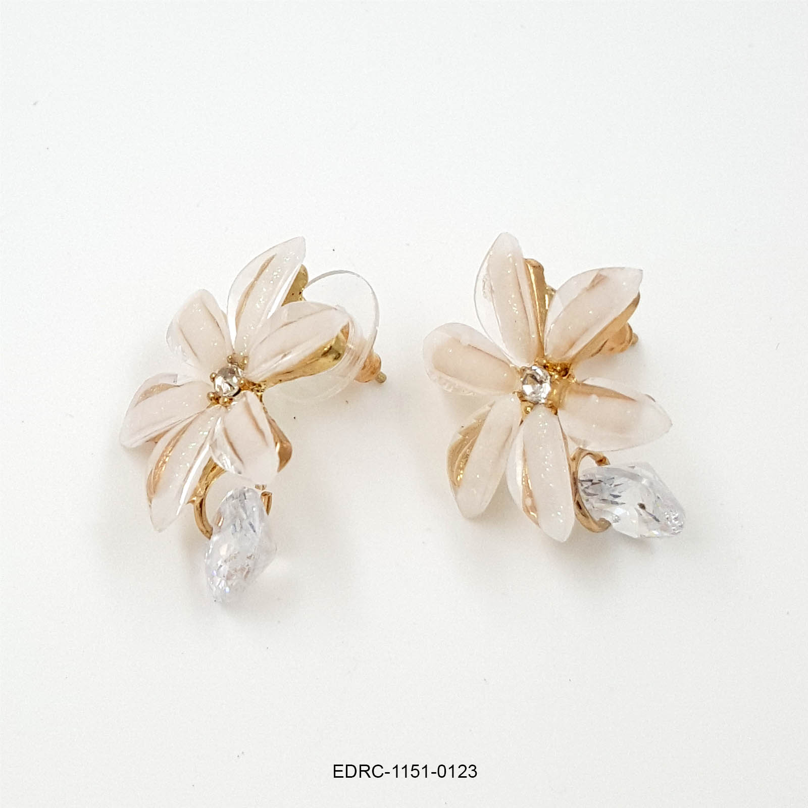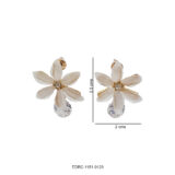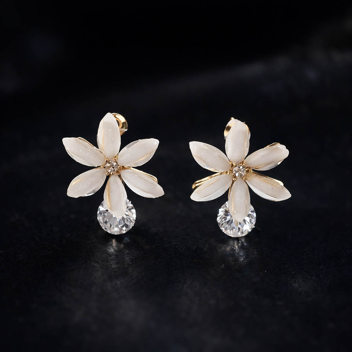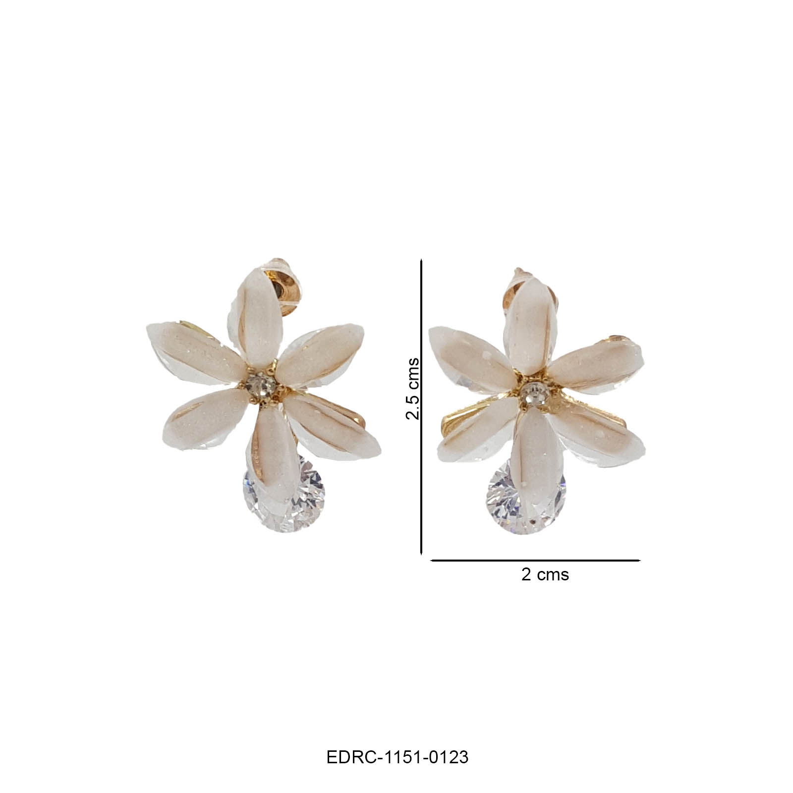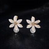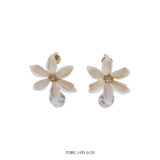 Delicate and elegant, these ivory floral drop earrings feature soft white petal-shaped stones arranged in a graceful flower design. Accented with a subtle crystal centre and finished with a shimmering crystal drop, they offer a perfect balance of freshness and sparkle. The warm gold detailing adds a timeless charm, making these earrings an effortless choice for both everyday elegance and special occasions.