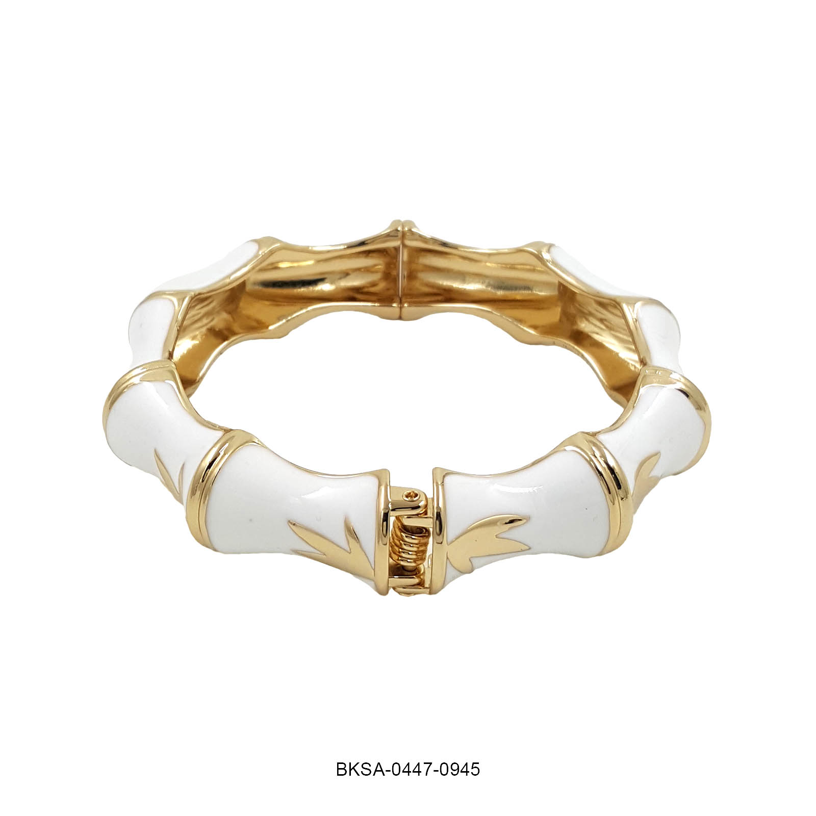 A timeless statement of elegance, the Ivory Grace Enamel Bangle features a lustrous white enamel finish with golden bamboo-inspired accents. Its clean, minimal aesthetic radiates sophistication — perfect for elevating both festive and everyday looks with effortless charm.