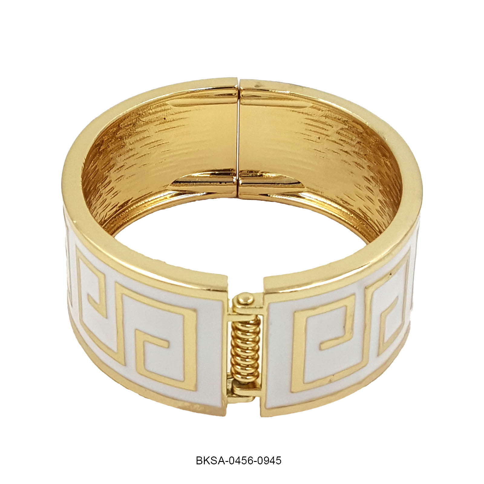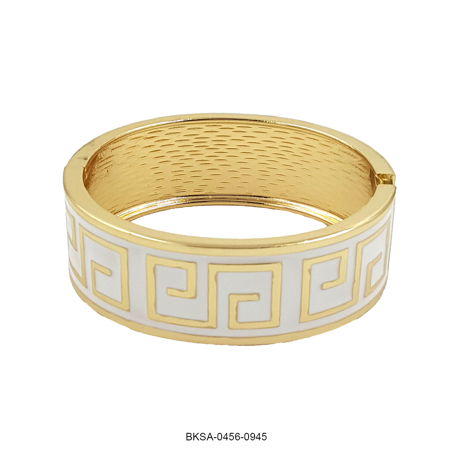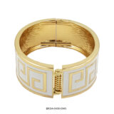 The Ivory Maze Enamel Bangle radiates timeless grace and sophistication. Featuring a pristine white enamel base with elegant golden maze motifs, this piece blends classic charm with contemporary design. Its refined finish makes it perfect for both festive occasions and modern ensembles.
