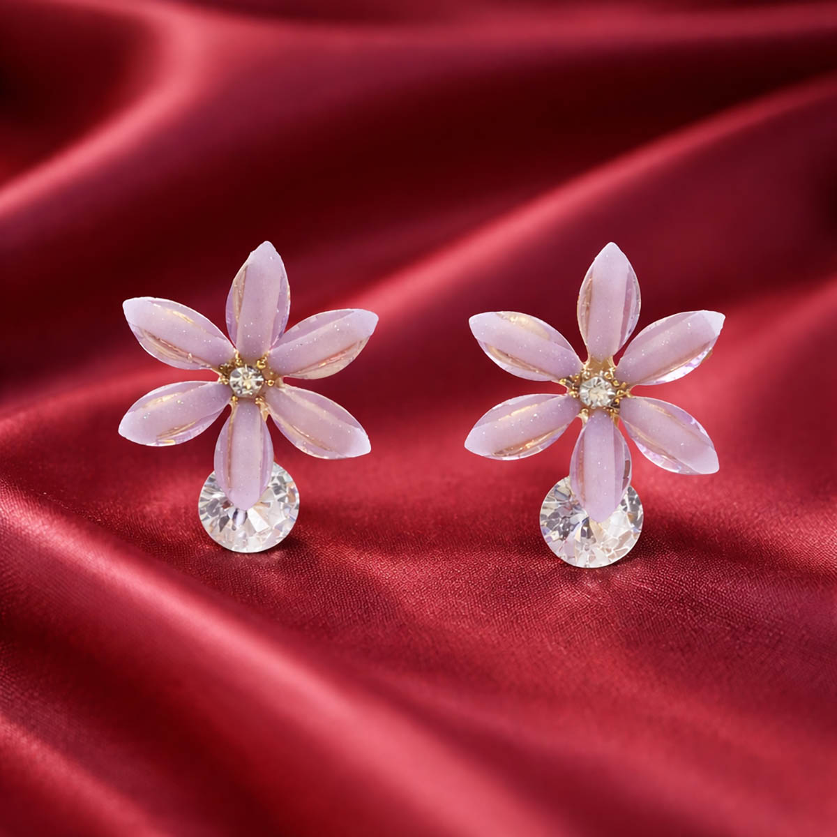 These charming floral drop earrings feature soft lavender petal-shaped stones arranged in a graceful flower design, highlighted with a subtle crystal centre and finished with a sparkling crystal drop. The soothing pastel lavender tone paired with delicate gold accents adds an elegant, romantic touch. Lightweight and feminine, these earrings are perfect for elevating everyday looks as well as light festive ensembles.