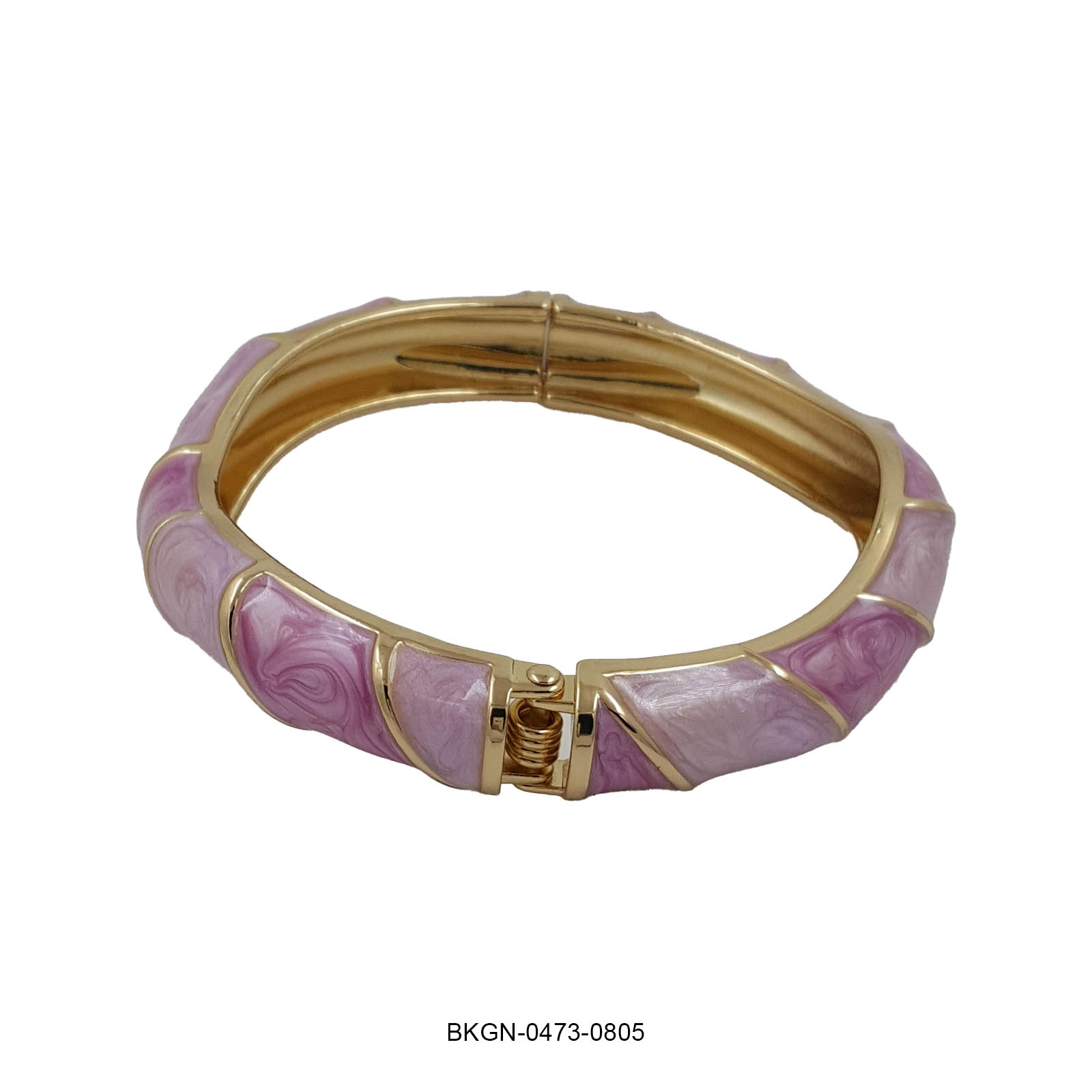 Soft, serene, and effortlessly chic — the Lavender Lustre Kada celebrates the beauty of gentle hues in perfect harmony. Crafted with alternating swirls of lavender and blush enamel on a gleaming gold base, this piece brings a calm yet captivating charm. Its curved, polished design adds a contemporary edge, making it ideal for women who adore understated luxury.