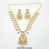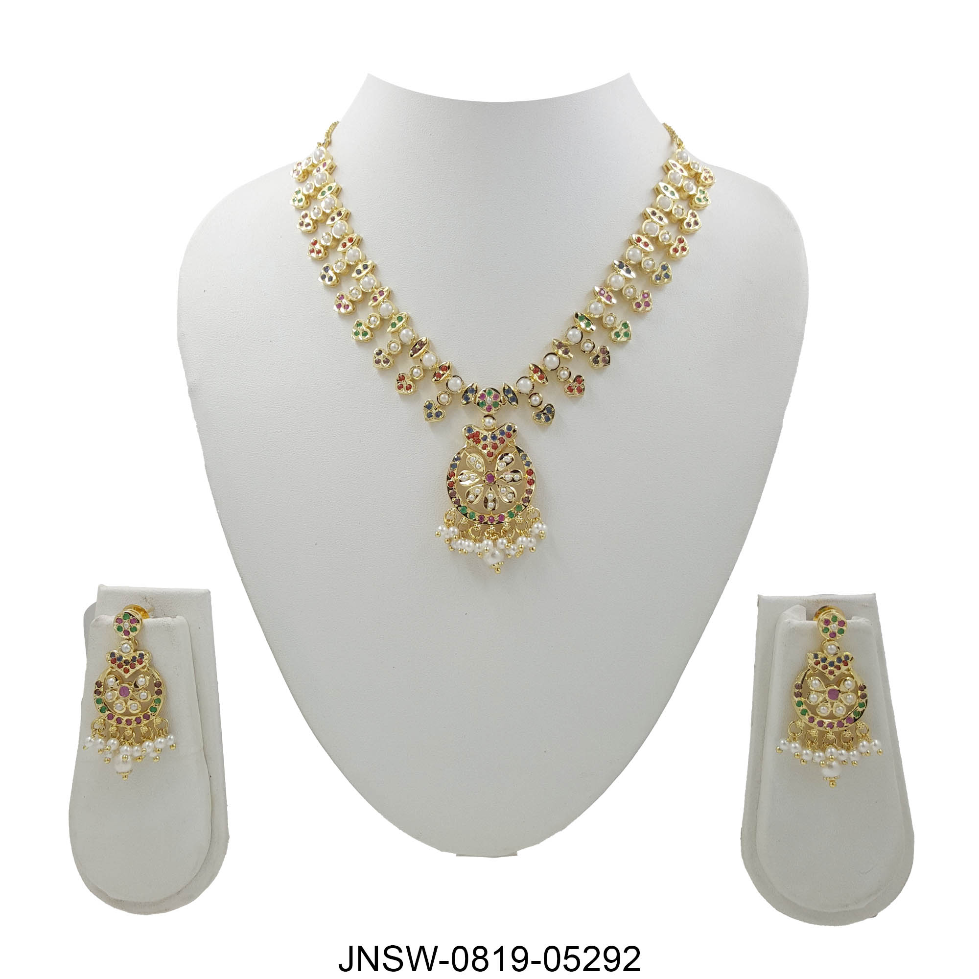 Celebrate vibrant tradition with this handcrafted meenakari necklace set, adorned with multicoloured detailing and luminous pearl droplets. The centre pendant features intricate floral artistry paired with a soft gold-tone finish, creating a piece that radiates festive charm. Lightweight, versatile, and festive-ready, it blends heritage craftsmanship with timeless elegance.