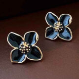 Bold and elegant, the Midnight Bloom Studs feature jet-black enamel petals outlined in gold, centered with a dotted golden bloom. These floral earrings bring a dramatic charm to your look — a perfect blend of statement and subtlety.
