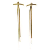 These sleek drop earrings feature a refined gold bar top with cascading fine chain tassels that create graceful movement with every step. The elongated silhouette adds a modern, sophisticated edge while keeping the design light and effortless. Perfect for those who love minimalist jewellery with a statement feel, these earrings transition beautifully from day to night.