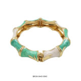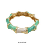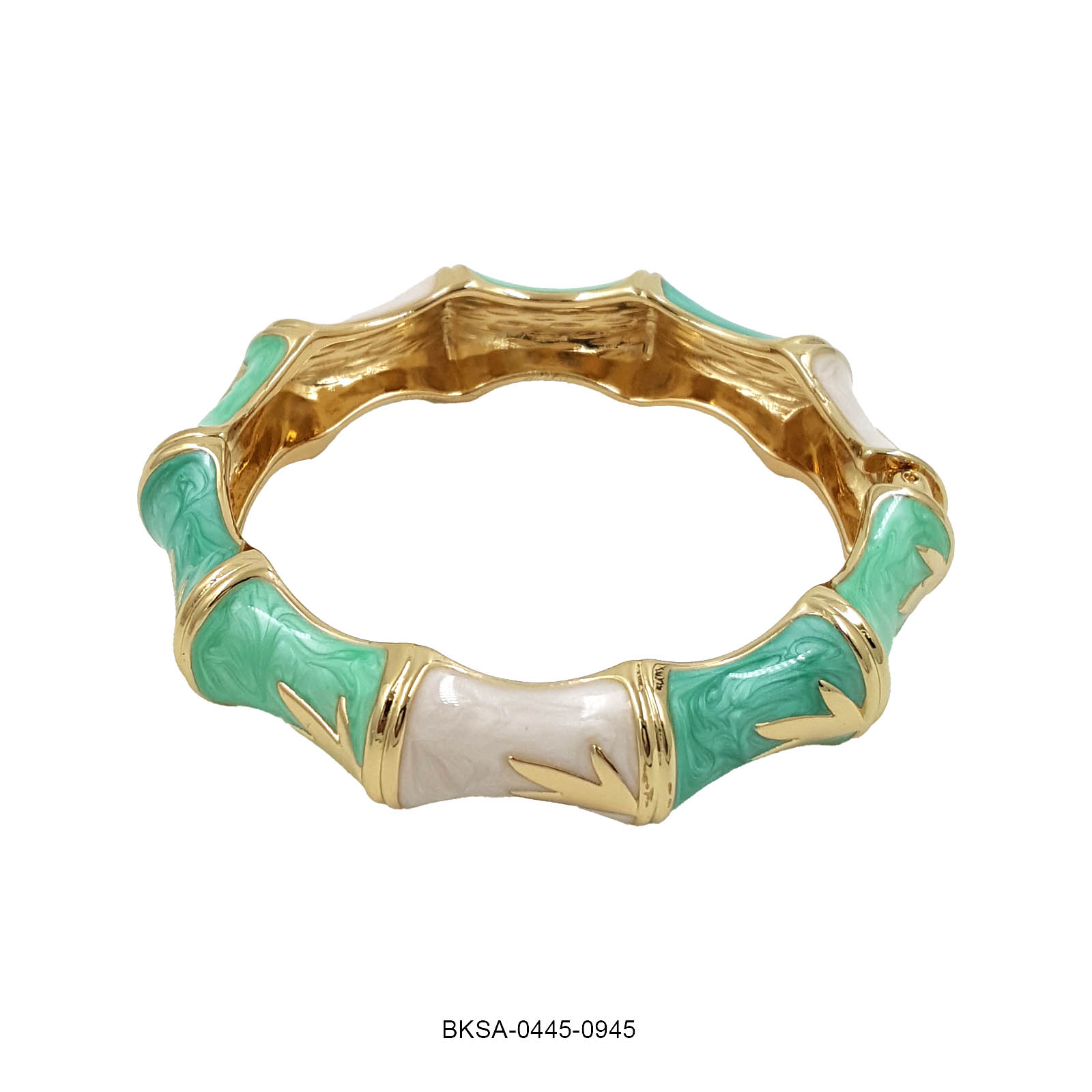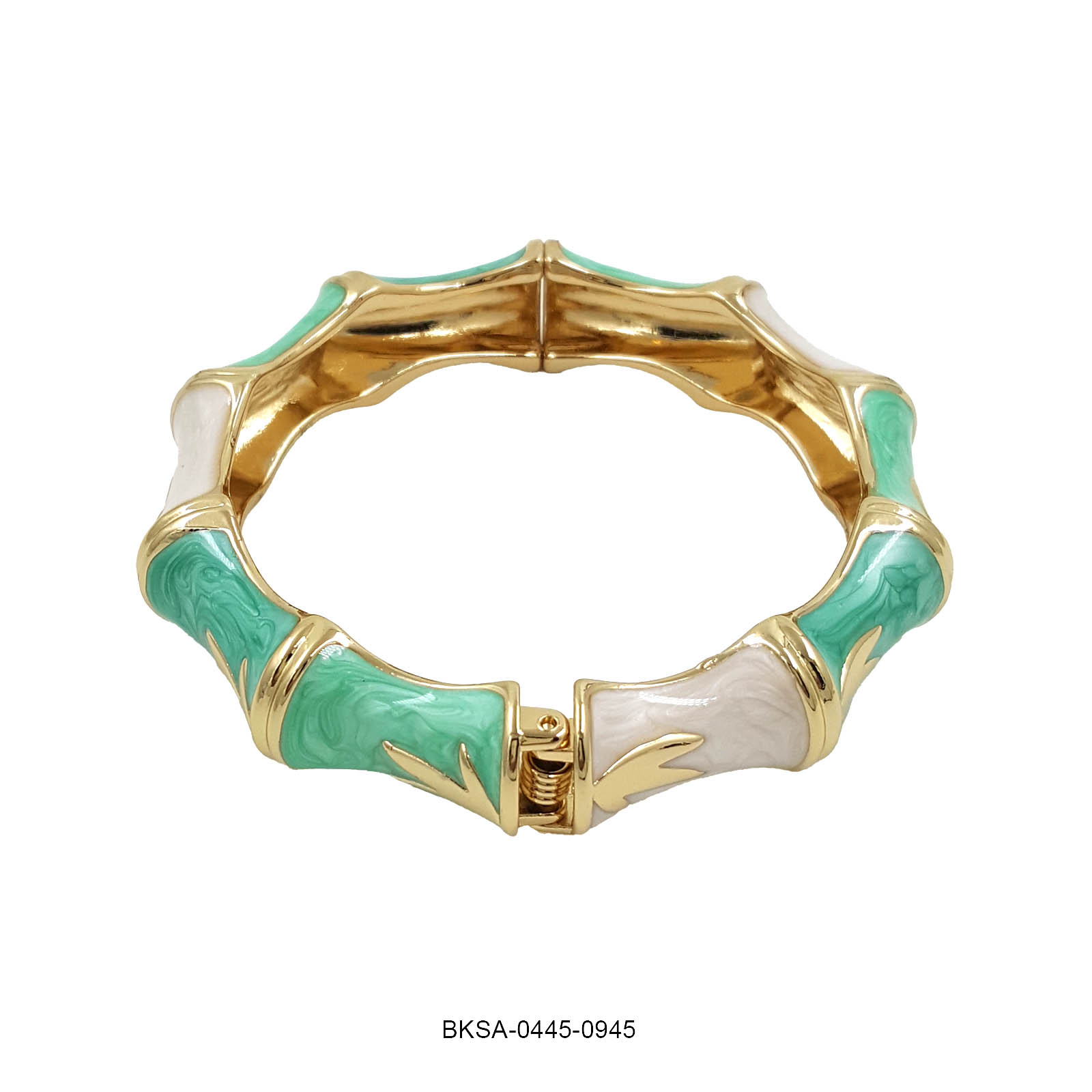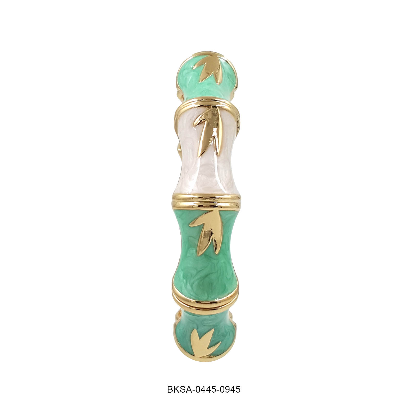 This pastel green and pearl enamel bangle draws inspiration from nature’s soft tones, framed with golden bamboo-style detailing. Elegant and refreshing, it’s perfect for adding a light, breezy charm to your festive or everyday look.