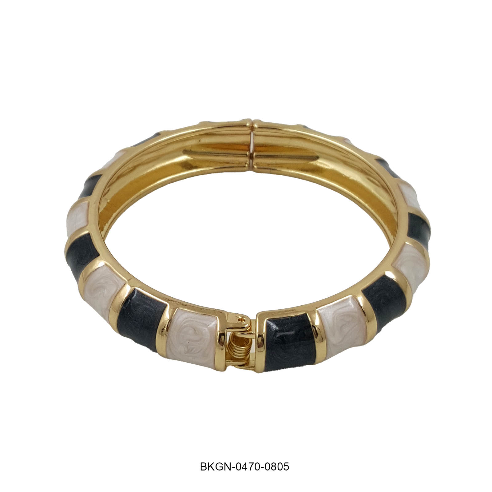 Timeless, bold, and beautifully balanced — the Monochrome Majesty Kada is a statement piece that never goes out of style. Designed with alternating black and white enamel segments framed in a luxurious gold finish, this bracelet brings sophistication and modern flair together seamlessly. The smooth enamel detailing adds a touch of artistry, making it a must-have accessory for those who love refined contrast and elegance.