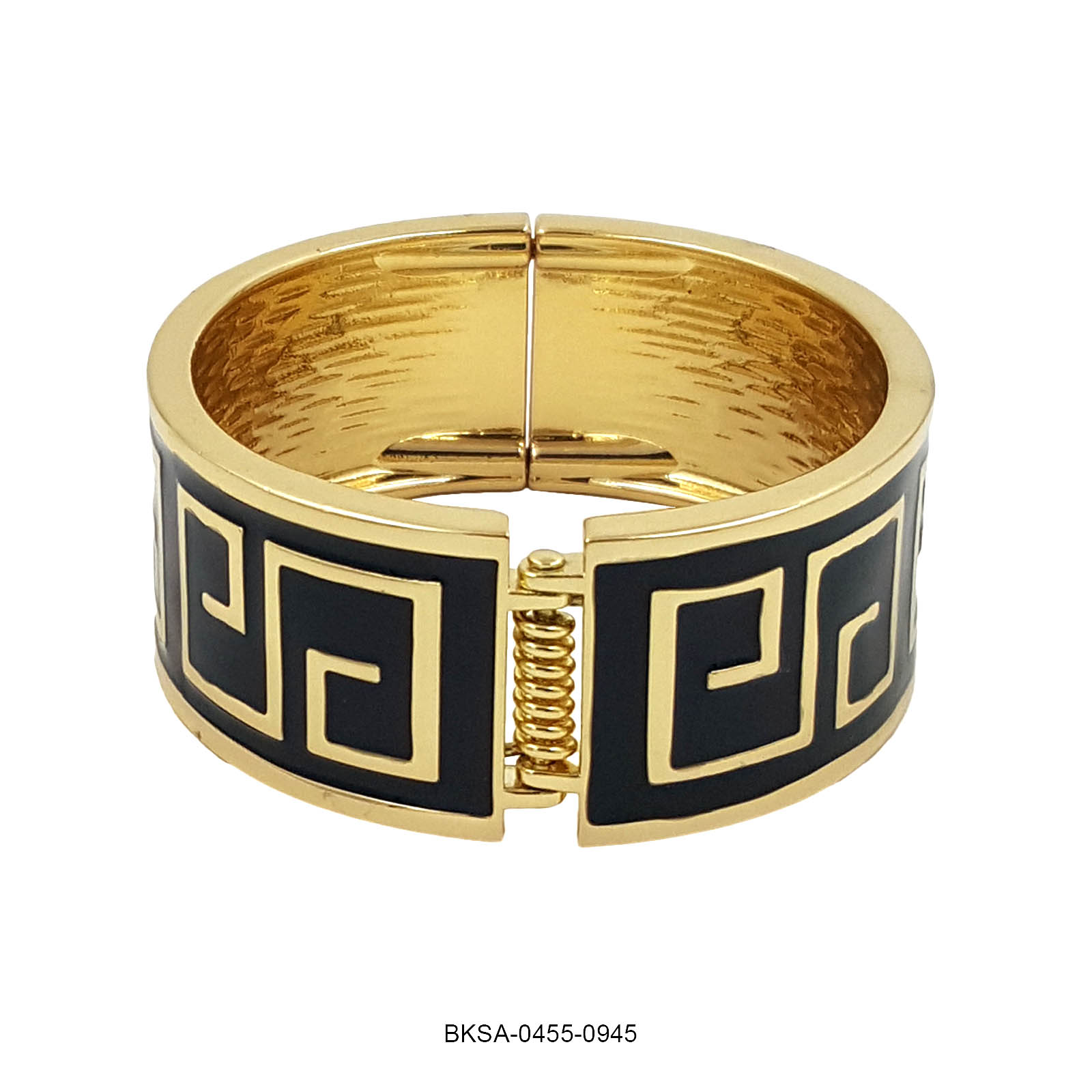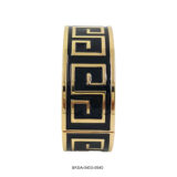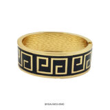 The Noir Maze Enamel Bangle is a bold expression of sophistication. With its deep black enamel and intricate gold maze pattern, this statement piece exudes timeless elegance and contemporary charm. Perfect for those who appreciate classic luxury with a modern twist.