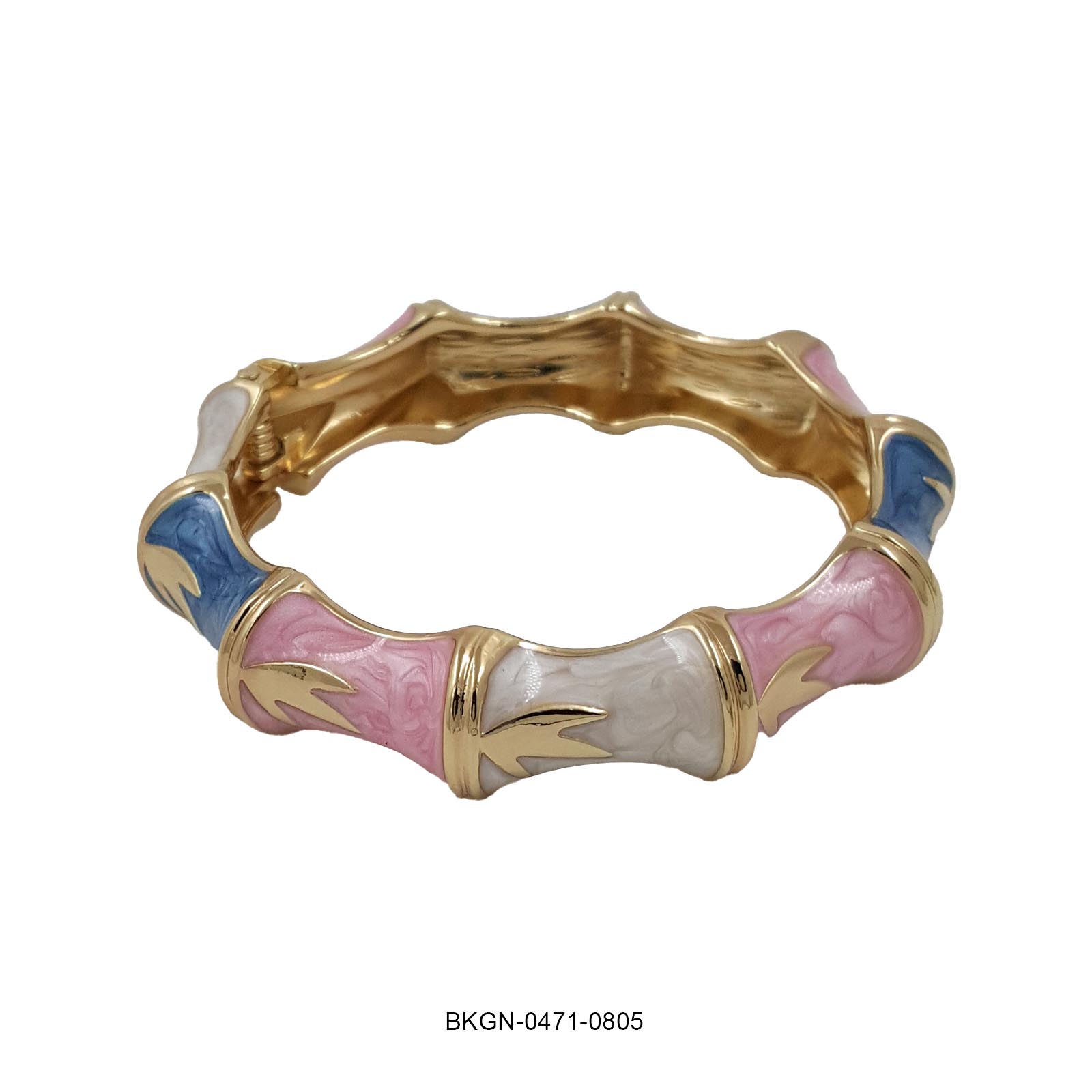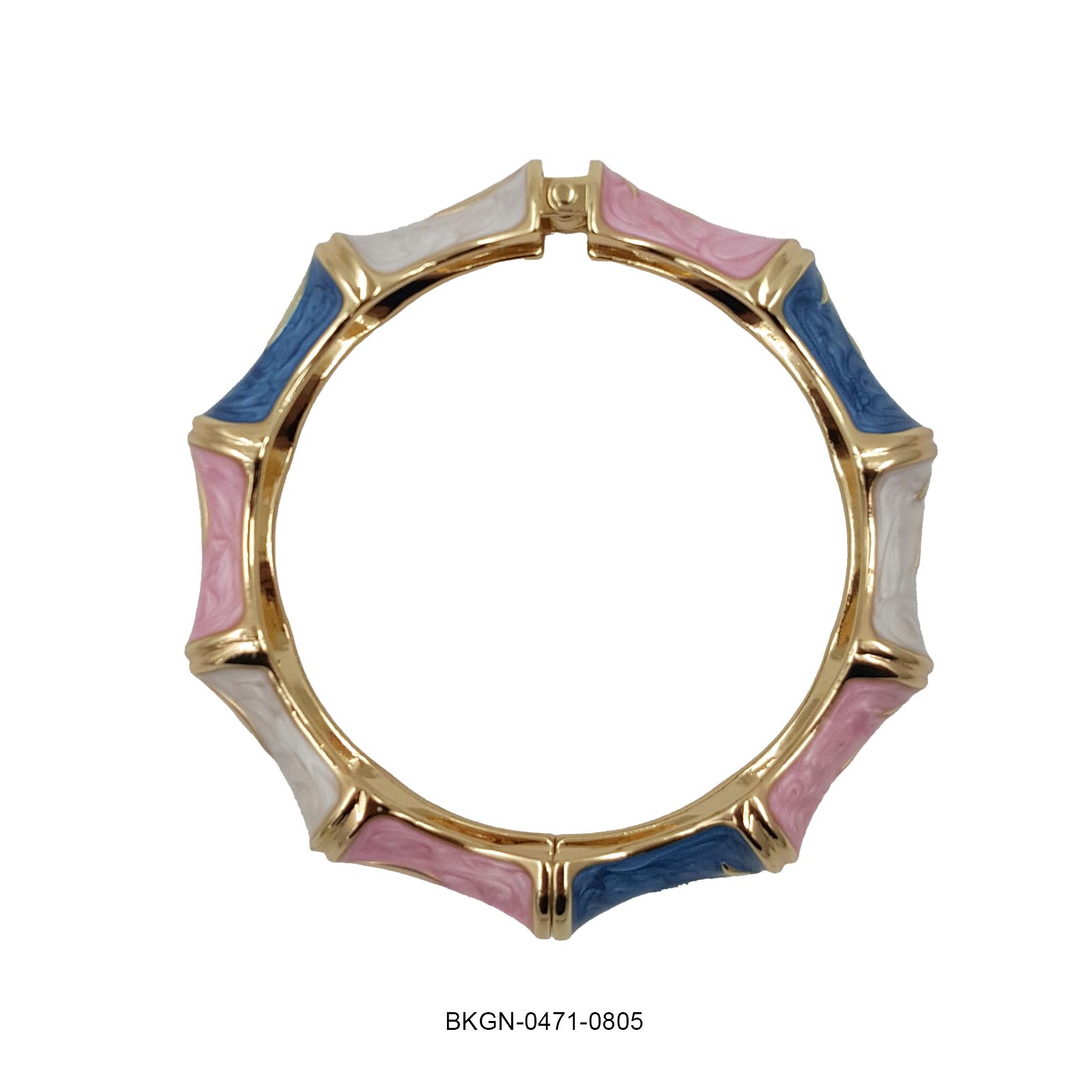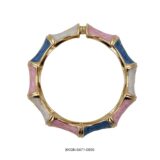 Playful yet poised — the Pastel Bloom Kada celebrates color and craftsmanship in perfect harmony. Featuring alternating enamel segments in soft shades of blue, pink, and ivory, delicately outlined in lustrous gold, this bracelet brings a touch of whimsy to classic sophistication. Its sculpted design and glossy finish make it a standout accessory for those who love elegance with a fun twist.