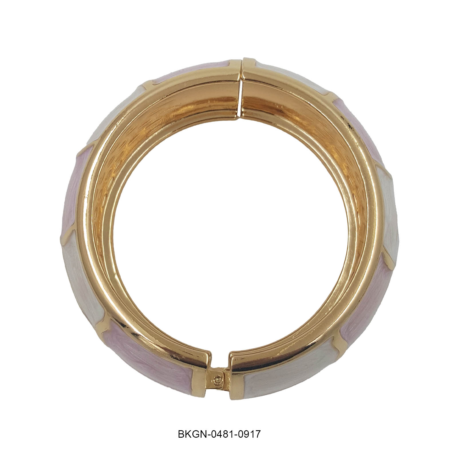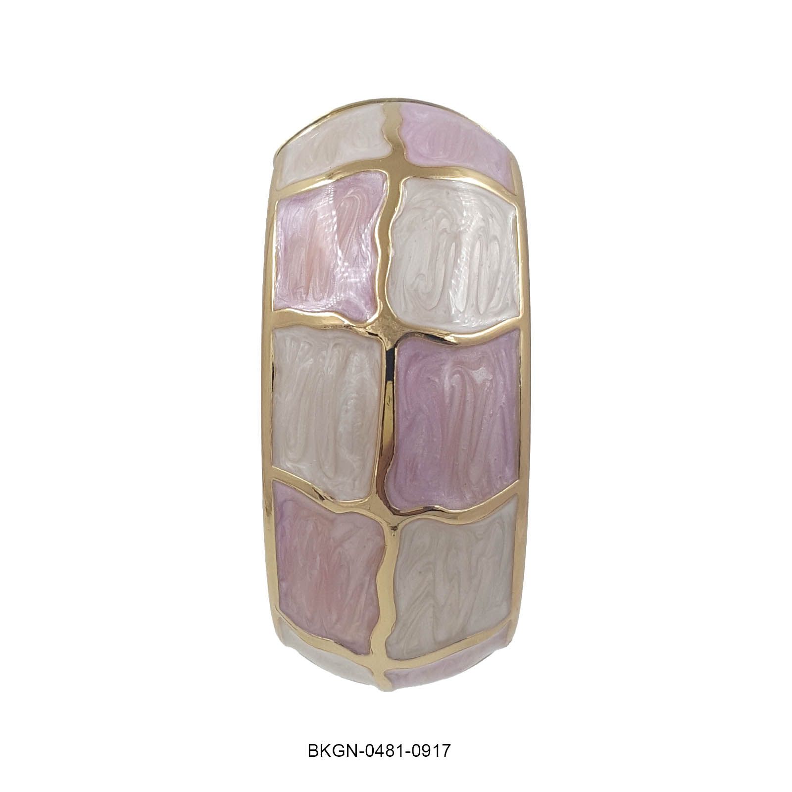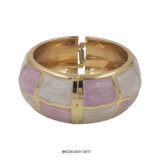 This chic kada bracelet features a soft mosaic pattern crafted in pastel pink and ivory enamel, separated by elegant gold-toned borders. The smooth, rounded silhouette gives it a bold yet feminine appeal, while the textured inner finish adds a touch of artisanal detail. Lightweight and versatile, this bracelet is perfect for adding a pop of color and sophistication to both casual and festive looks.