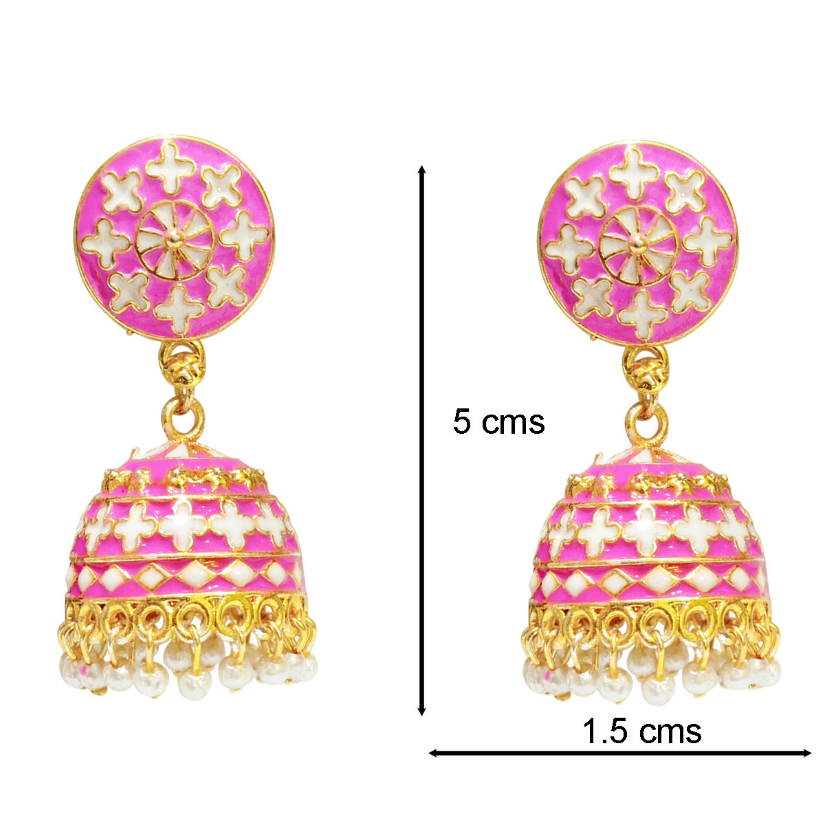 Be the first to review “Pink Royale Enamel Jhumka Earrings”