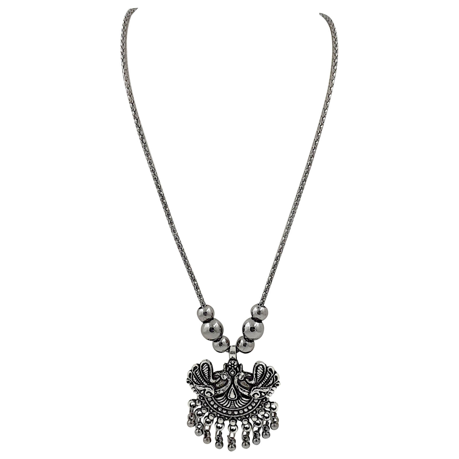 Be the first to review “Regal Charm Oxidised Peacock Pendant Necklace”
