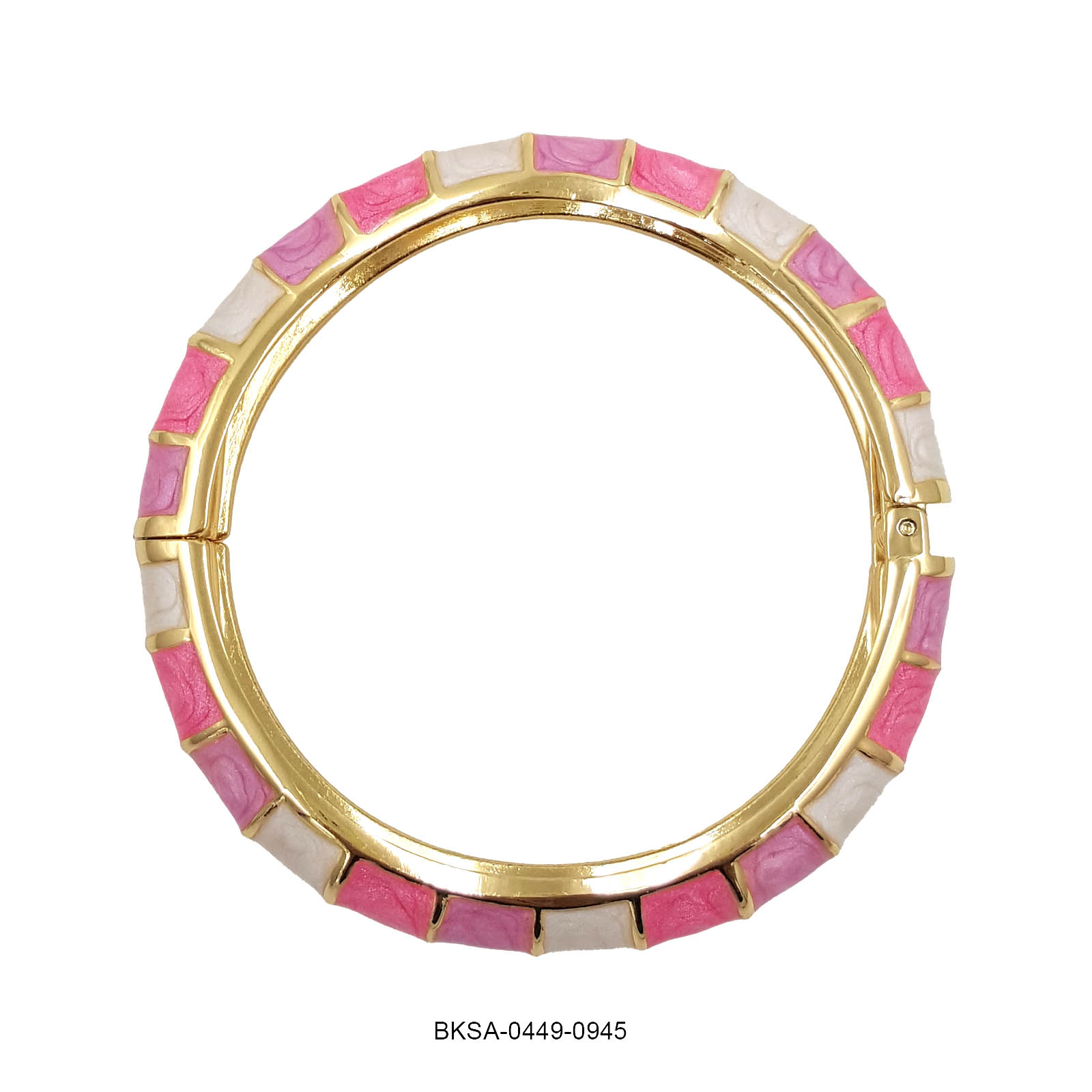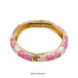Radiate soft elegance with the Rosy Charm Enamel Bangle. Featuring delicate hues of pink, lilac, and white over a glossy gold base, this bangle embodies femininity and festive grace. Its sleek square silhouette adds a modern twist to traditional enamel artistry — perfect for both casual charm and festive sparkle.
