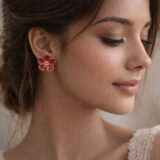 Graceful and eye-catching, these red floral stud earrings feature rich enamel petals accented with intricate gold-toned detailing at the centre. The deep ruby hue adds warmth and elegance, making these studs a perfect statement for both festive and everyday looks. Lightweight and comfortable, they blend floral charm with a timeless appeal.