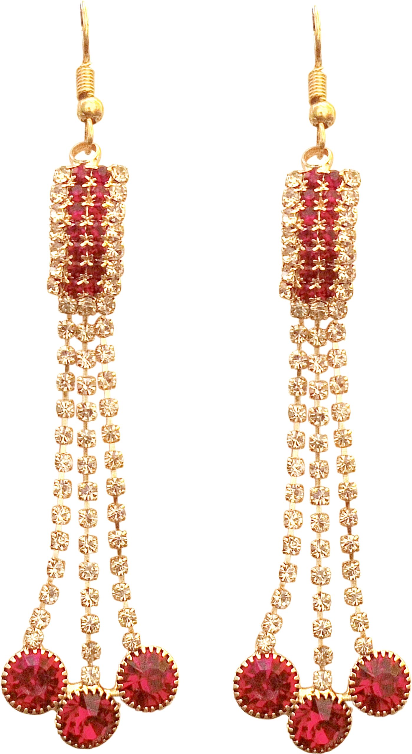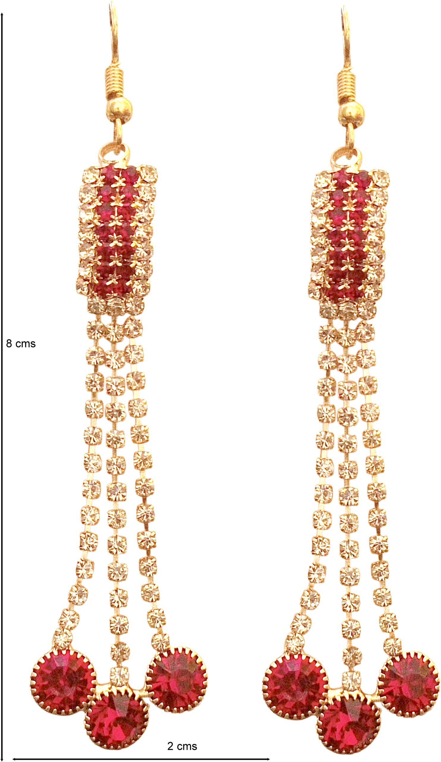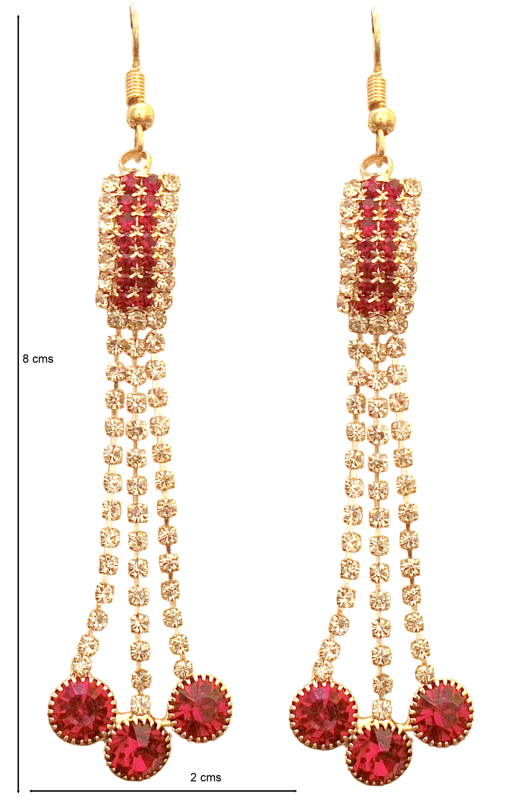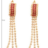 Add a touch of timeless glamour to your look with these stunning Gold-Tone Tassel Earrings featuring rich ruby-red crystals and shimmering stone chains. The structured top is accented with deep red stones, while cascading crystal strands end in bold faceted drops that sway beautifully with every move. Perfect for festive occasions, weddings, parties, and evening outings, these earrings strike the perfect balance between elegance and statement style. Lightweight yet eye-catching, they’re designed to elevate both ethnic and Indo-western outfits with ease.