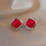 Vibrant and luxurious, the Scarlet Glow American Diamond Studs feature a bold red center stone cradled in a golden frame, accented with glistening American diamonds. The soft cushion-cut shape adds a rich, modern appeal, while the surrounding sparkle creates a radiant contrast. These earrings are perfect for adding a touch of glamour to festive outfits or evening wear.