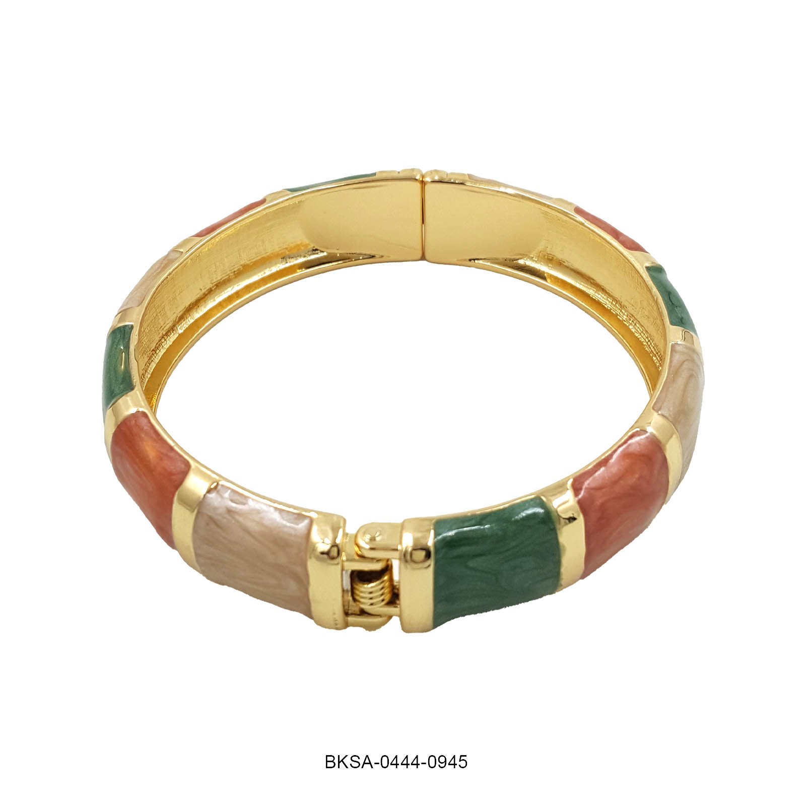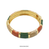 Infused with warm hues of green, orange, and pearl, this gold-finish enamel bangle brings a festive charm with modern elegance. Its vibrant yet subtle color play makes it perfect for any occasion that calls for a touch of tradition and style.